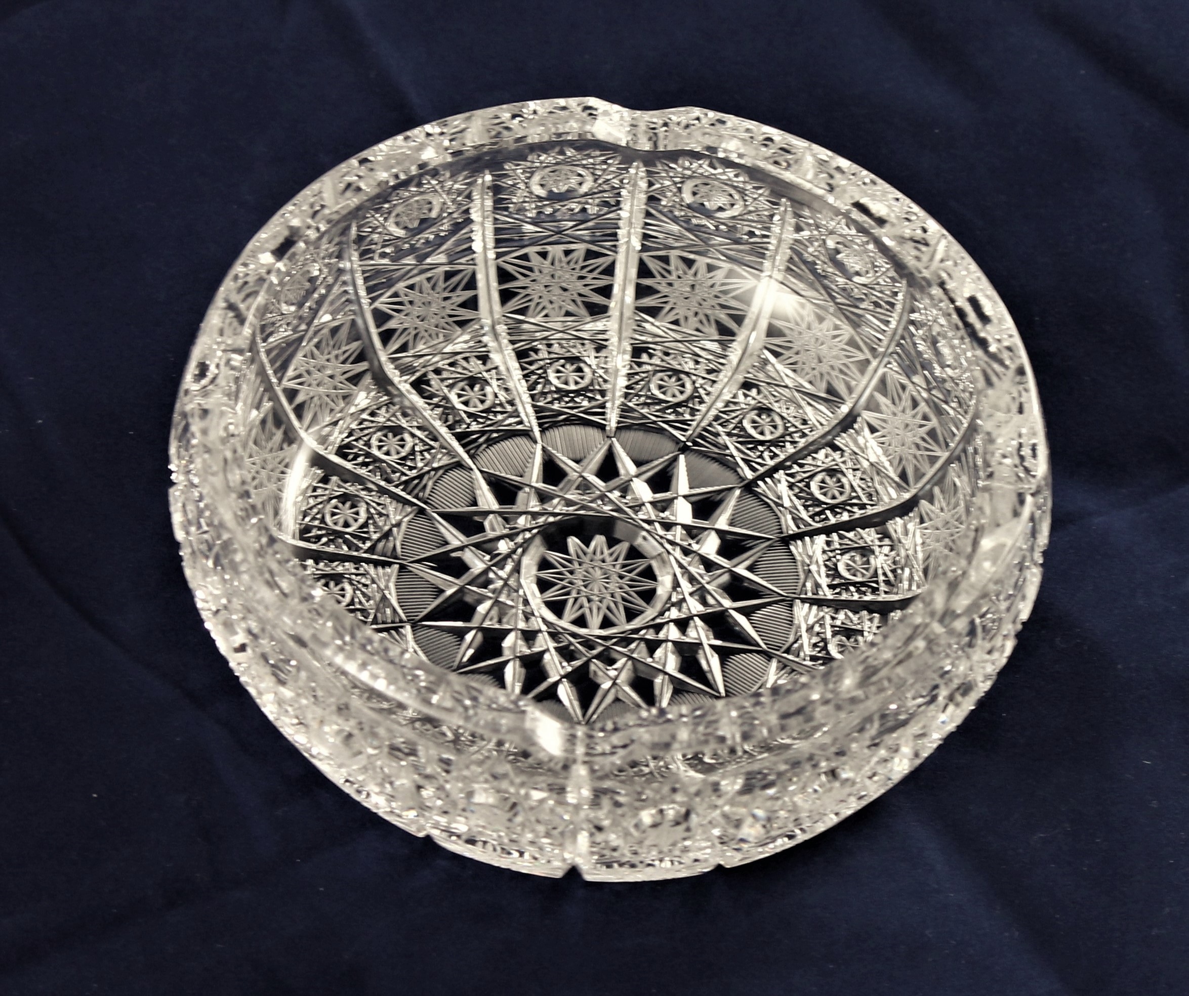 Aschenbecher aus Bleikristall, Durchmesser 160mm, Material : Bleikristall mit 24% PbO . Hergestellt nach der klassischen Methode in traditionellen Mustern, mundgeblasen und handgeschliffen mit Steinscheiben. Ohne die Verwendung von automatischen Maschinen oder computergesteuerten Arbeitsschritten. Nach der alten Böhmischen Handwerkskunst, original und fachmännisch Bleikristall zu verarbeiten.