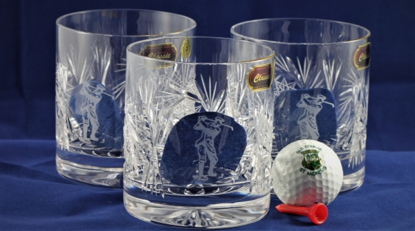 “19th hole” Whisky Gläser aus Bleikristall, 6 Stück, Volumen 300ml Material : Bleikristall mit 24% PbO . Hergestellt nach der klassischen Methode in traditionellen Mustern, mundgeblasen und handgeschliffen mit Steinscheiben. Ohne die Verwendung von automatischen Maschinen oder computergesteuerten Arbeitsschritten. Nach der alten Böhmischen Handwerkskunst, original und fachmännisch Bleikristall zu verarbeiten.