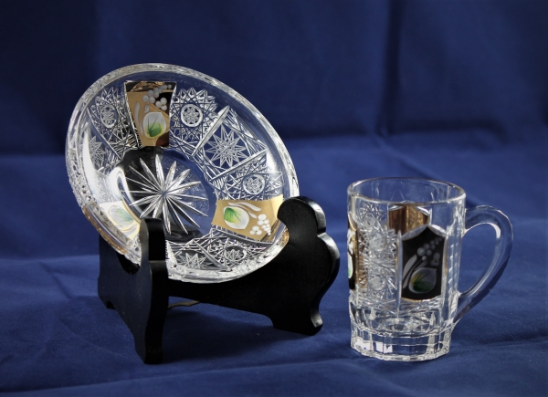 Tasse aus Bleikristall, Volumen 75mm, Material : Bleikristall mit 24% PbO . Hergestellt nach der klassischen Methode in traditionellen Mustern, mundgeblasen und handgeschliffen mit Steinscheiben. Ohne die Verwendung von automatischen Maschinen oder computergesteuerten Arbeitsschritten. Nach der alten Böhmischen Handwerkskunst, original und fachmännisch Bleikristall zu verarbeiten.