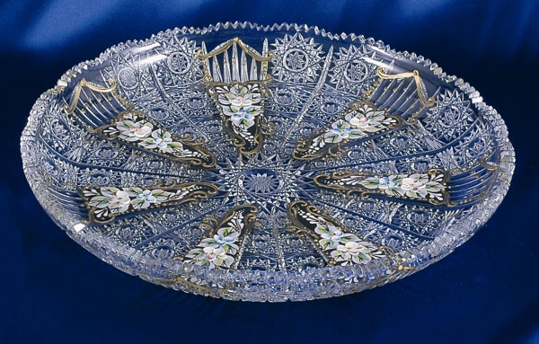 Teller aus Bleikristall, Durchmesser 310mm, Material : Bleikristall mit 24% PbO . Hergestellt nach der klassischen Methode in traditionellen Mustern, mundgeblasen und handgeschliffen mit Steinscheiben. Ohne die Verwendung von automatischen Maschinen oder computergesteuerten Arbeitsschritten. Nach der alten Böhmischen Handwerkskunst, original und fachmännisch Bleikristall zu verarbeiten.