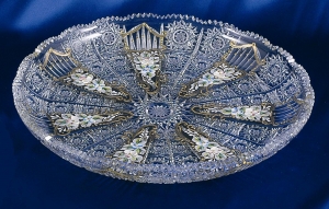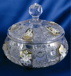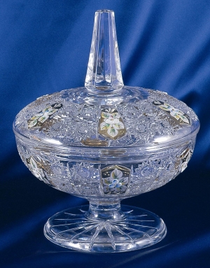 Die Kristall-Schalen mit Deckel (160mm oder 210mm Durchmesser), der Kristall-Korb (200mm Durchmesser) oder die verschiedenen Kristall-Kerzenleuchter sind bemerkenswerte Stücke in ihrer Art. Die Kristall-Schüssel (300mm Durchmesser) und der Kristall-Teller (310mm Durchmesser) sind höchst repräsentative Stücke.