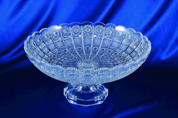 Schale aus Bleikristall, Durchmesser 320mm, Material : Bleikristall mit 24% PbO . Hergestellt nach der klassischen Methode in traditionellen Mustern, mundgeblasen und handgeschliffen mit Steinscheiben. Ohne die Verwendung von automatischen Maschinen oder computergesteuerten Arbeitsschritten. Nach der alten Böhmischen Handwerkskunst, original und fachmännisch Bleikristall zu verarbeiten.