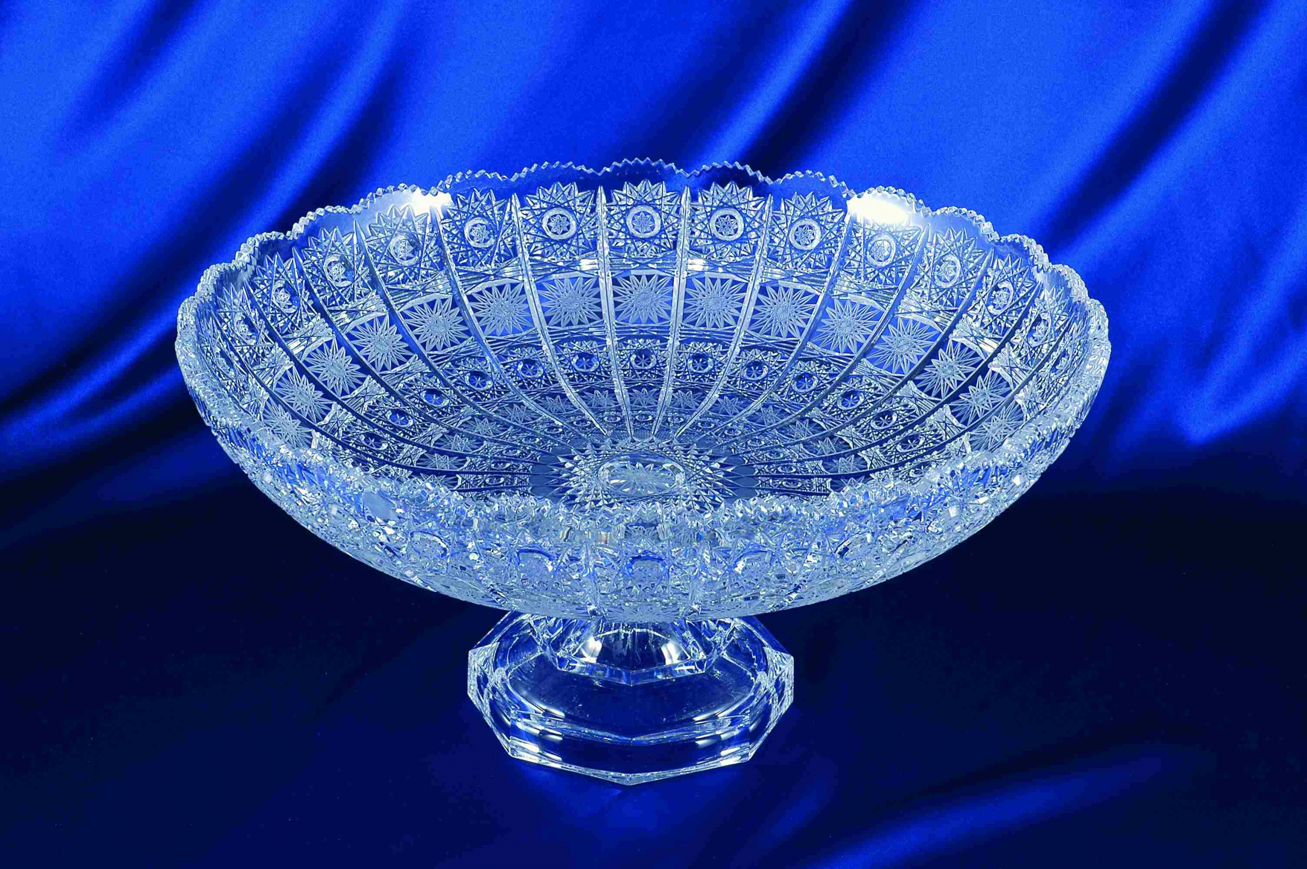 SKU: 156-350 Category: Teller, Schalen, Schüssel Tags: 320mm Durchmesser, Böhmische Schule., Böhmisches Bleikristall, handgeschliffen mit Steinscheiben, Kristall Schale mit Fuß, mundgeblasen, Pariser Schliff, rund
