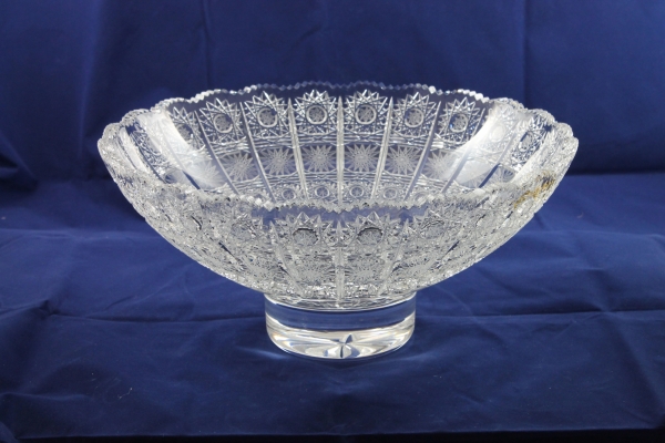Schüssel aus Bleikristall, Durchmesser 300mm, Material : Bleikristall mit 24% PbO . Hergestellt nach der klassischen Methode in traditionellen Mustern, mundgeblasen und handgeschliffen mit Steinscheiben. Ohne die Verwendung von automatischen Maschinen oder computergesteuerten Arbeitsschritten. Nach der alten Böhmischen Handwerkskunst, original und fachmännisch Bleikristall zu verarbeiten.