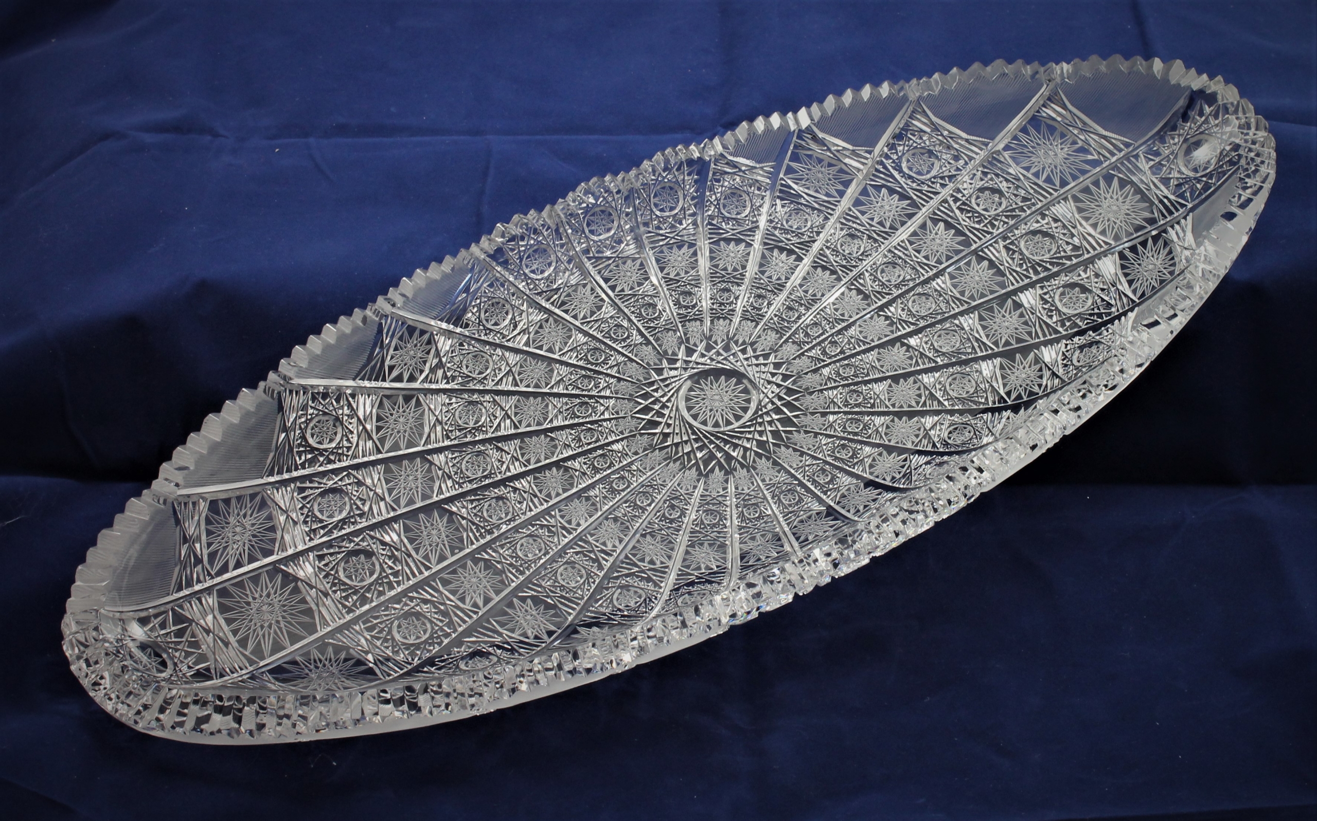 Kristall Fisch-Teller, 450mm, oval, original Böhmisches Bleikristall mit 24% Pb0, Pariser Schliff, handgeschliffen mit Steinscheiben, mundgeblasen, klassische Form, Böhmische Schule der Kristallkunst.