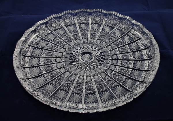 Teller aus Bleikristall, Durchmesser 310mm, Material : Bleikristall mit 24% PbO . Hergestellt nach der klassischen Methode in traditionellen Mustern, mundgeblasen und handgeschliffen mit Steinscheiben. Ohne die Verwendung von automatischen Maschinen oder computergesteuerten Arbeitsschritten. Nach der alten Böhmischen Handwerkskunst, original und fachmännisch Bleikristall zu verarbeiten.
