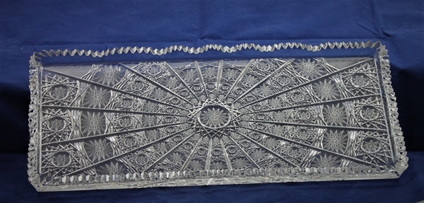 Teller aus Bleikristall, Länge 320mm, Material : Bleikristall mit 24% PbO . Hergestellt nach der klassischen Methode in traditionellen Mustern, mundgeblasen und handgeschliffen mit Steinscheiben. Ohne die Verwendung von automatischen Maschinen oder computergesteuerten Arbeitsschritten. Nach der alten Böhmischen Handwerkskunst, original und fachmännisch Bleikristall zu verarbeiten.