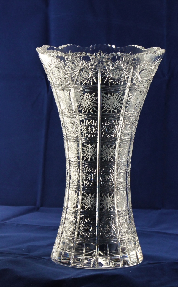 Vase aus Bleikristall, Höhe 250mm, Material : Bleikristall mit 24% PbO . Hergestellt nach der klassischen Methode in traditionellen Mustern, mundgeblasen und handgeschliffen mit Steinscheiben. Ohne die Verwendung von automatischen Maschinen oder computergesteuerten Arbeitsschritten. Nach der alten Böhmischen Handwerkskunst, original und fachmännisch Bleikristall zu verarbeiten.
