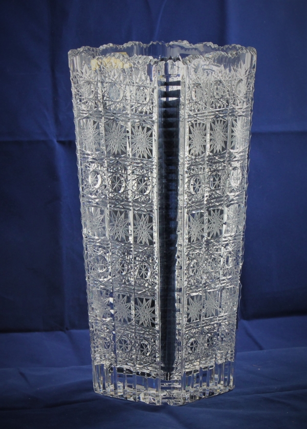 SKU: 32-b-300 Category: Vasen Tags: 300mm hoch, Böhmische Schule., Böhmisches Bleikristall, eckig, handgeschliffen mit Steinscheiben, Kristall Vase, mundgeblasen, Pariser Schliff, schlank