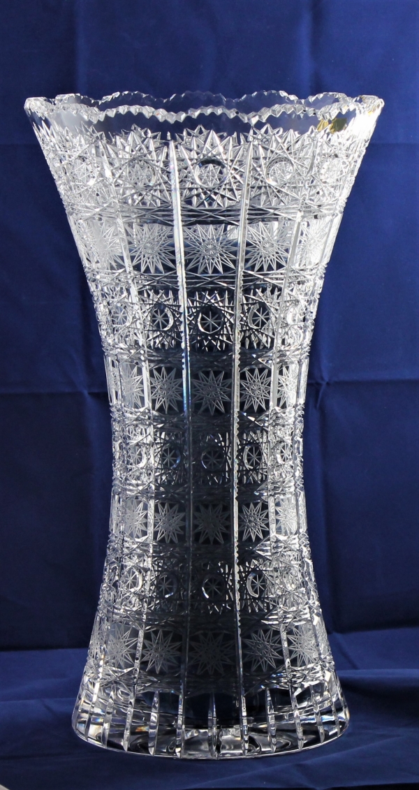 Vase aus Bleikristall, Höhe 400mm, Material : Bleikristall mit 24% PbO . Hergestellt nach der klassischen Methode in traditionellen Mustern, mundgeblasen und handgeschliffen mit Steinscheiben. Ohne die Verwendung von automatischen Maschinen oder computergesteuerten Arbeitsschritten. Nach der alten Böhmischen Handwerkskunst, original und fachmännisch Bleikristall zu verarbeiten.